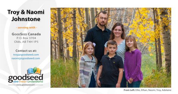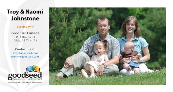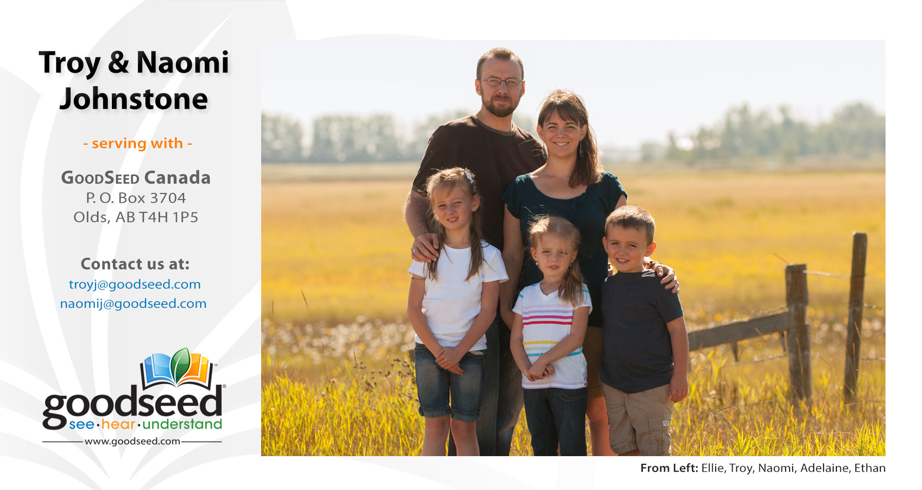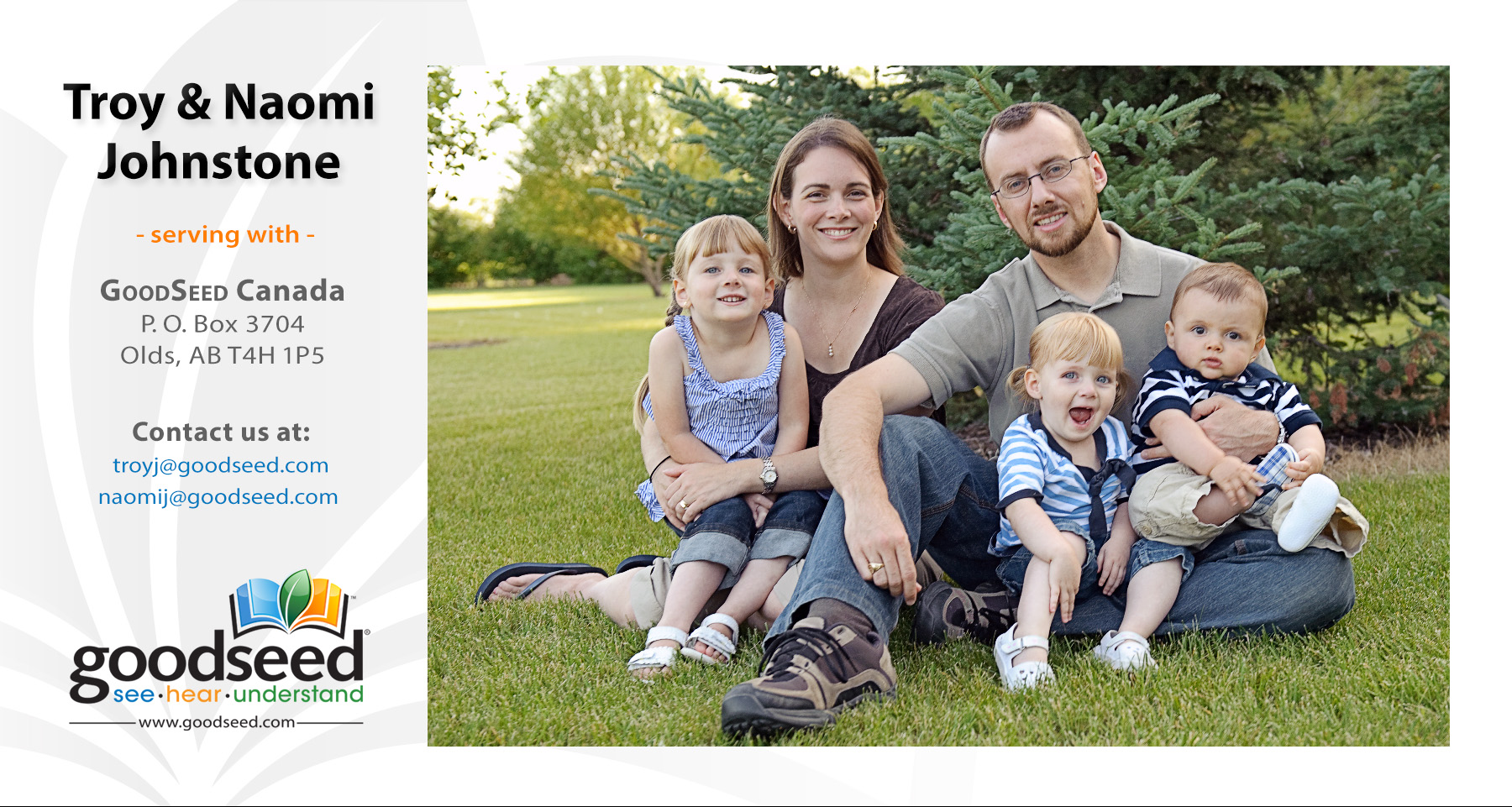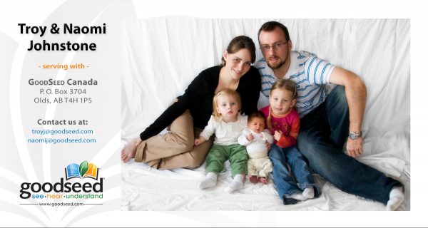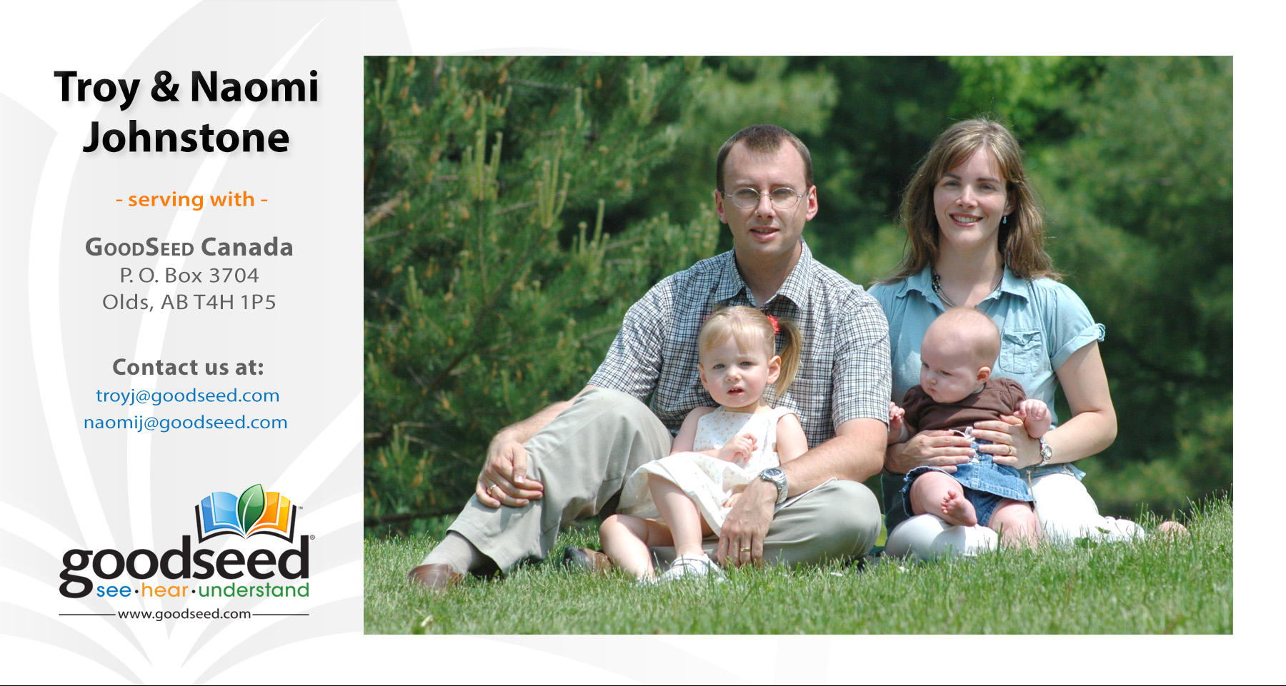 Now there is an Adelaine in the picture, literally. We celebrated our fifth anniversary and also changed our address. In the Fall of 2007 we said goodbye to our dear coworkers at WOLBI and moved to Alberta to join the ministry of GoodSeed.